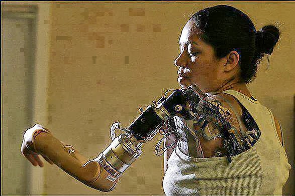 Claudia Mitchell - first woman to have a bionic arm - a prosthetic limb that she controls with her mind. Claudia Mitchell, who lost her arm in a motorcycle crash in 2004, volunteered to be fitted with the limb in 2006 after becoming frustrated with a standard prosthetic. Surgeons took nerves from her shoulder and embedded them under muscle in her chest.