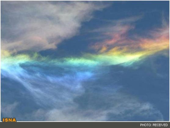پدیده رنگین کمان آتش (fire rainbow) در اثر برخورد نور خورشید با کریستالهای بزرگ یخی درون ابرها ایجاد میشود.