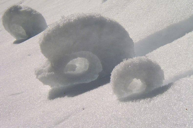 می چرخند و بزرگ می شوند.در اکثر موارد لایه ی داخلی با توجّه به ضعیف بودن بعد از چند دور فرو ریخته و گلوله ی برفی را شبیه به دونات تو خالی