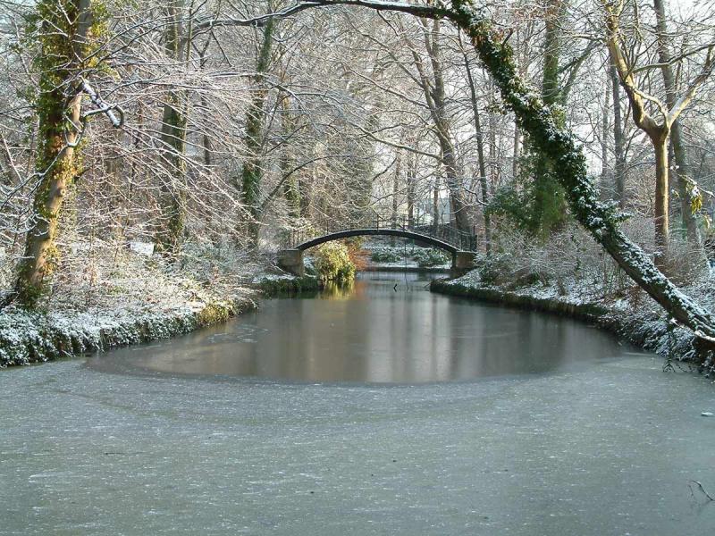 اما پرنده ماده در مجرای آب خود را قرار داده است و کنار او هم آب زیادی جمع شده است.